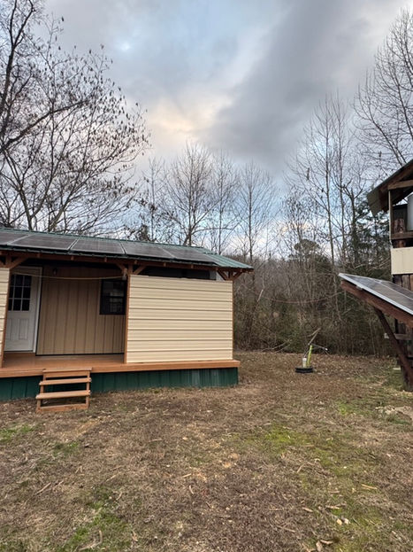 Deer Creek Off Grid has abundant, year round water, a creek that runs through the middle of the property, that's Deer Creek. We installed two 15' wells on the back side of the property with 4" PVC access for standard well pumps. We also built a tower with an IBC tote and piping and a pump to fill and act as water tower. Water is not a problem on this homestead.